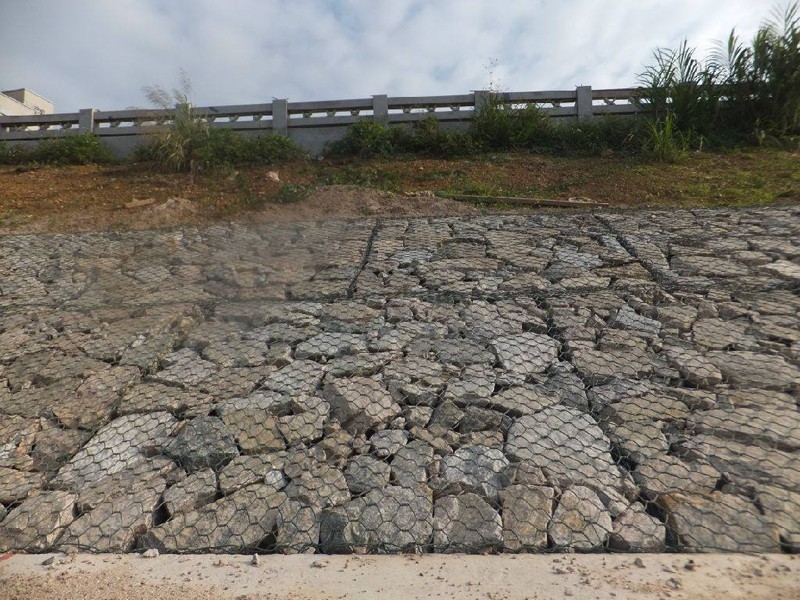 雷諾護(hù)墊是厚度在0.17-0.3m的網(wǎng)箱結(jié)構(gòu),在現(xiàn)場(chǎng)用于裝填石頭。主要用作河道、岸坡、路基邊坡護(hù)坡結(jié)構(gòu)。既可防止河岸遭水流、風(fēng)浪侵襲而破壞,又實(shí)現(xiàn)了水體與坡下土體間的自然對(duì)流交換功能,達(dá)到生態(tài)平衡。坡上植綠可增添景觀、綠化效果。